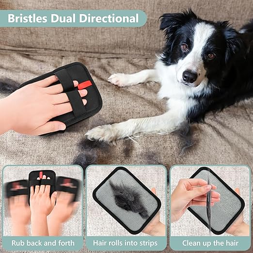 Perfect for multiple uses: as a pet to remove shedding hair directly from your pet, as a cleaning tool for sofas, carpets, or car seats, or as a magic brush pet to keep your clothes and bedding fur-free. Its lightweight, breathable design makes it comfortable to wear, even for longer grooming sessions.