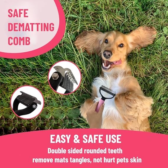 Dog Grooming Kit - Deshedding Brush for Short Hair, Slicker Brush, Flea Comb, Puppy Brush Set in Pink