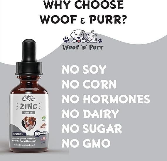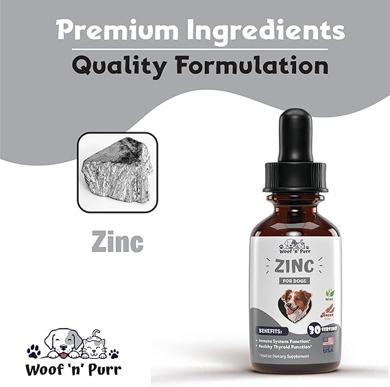 Introducing our premium Zinc for Dogs, a carefully crafted formula designed to promote your canine companion's overall health and vitality. Specially formulated to address common canine health concerns, our Zinc tincture offers a multitude of benefits to support your dog's well-being.Formulated to bolster your dog's immune system, our Zinc tincture aids in the production and activation of white blood cells, empowering their natural defenses against a variety of problems. With regular use, you can help your furry friend stay healthier and more resilient year-round.Experience the difference in your dog's skin and coat with our Zinc tincture. Say goodbye to dryness, itchiness, and dull fur as our formula nourishes and hydrates their skin, promoting a soft, shiny coat that you'll love to run your fingers through.Our Zinc tincture doesn't stop there. It's also designed to support reproductive health in both male and female dogs, aiding in sperm production, fetal development, and milk production. Whether you're planning for a litter or simply want to ensure your dog's reproductive system is in top condition, our Zinc tincture is the ideal choice.But the benefits don't end there. Our Zinc tincture is packed with essential enzymes that aid in digestion, energy production, and cell repair, contributing to your dog's overall vitality and longevity. Plus, it supports bone health, ensuring that your dog's skeletal system remains strong and resilient throughout their life.Trust in our Zinc tincture to provide your dog with the comprehensive support they need to thrive. Made with high-quality ingredients and backed by rigorous testing, it's a supplement you can feel confident giving to your beloved canine companion. Choose our Zinc tincture and help your dog live their happiest, healthiest life possible.