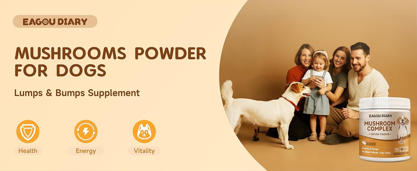 - Promotes Overall Health : Our mushroom powder for dogs is rich in nutrients and compounds that support your dog's immune system, digestion, cognitive function and overall vitality. Mushroom supplement for dogs can help your furry friend lead a healthier and more active life