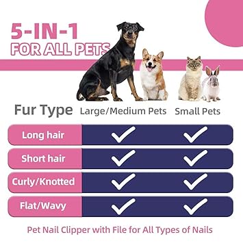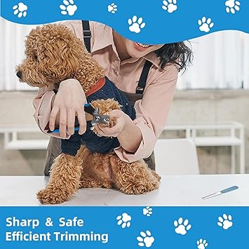 - Pet Nail Health: The dog nail clipper with nail file can easily trim thick nails of small, medium and large pets to avoid chipping;There is a safety guard stopper to prevent over-trimming and damage to the nail blood line;After clipping, use the included nail file to polish your dog's toenails to make them rounded and less scratchy; It is the preferred recommended product of many vets, professional pet groomers, animal trainers and thousands of satisfied customers