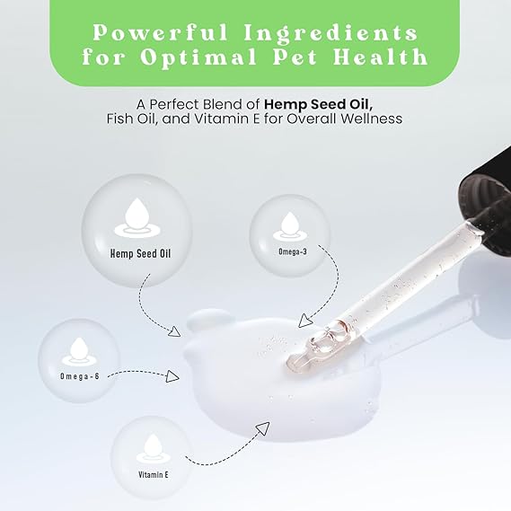 Hemp Oil for Dogs and Cats - Helps with Skin, Coat & Health - Premium Fish Oil Blend - Improves Immune System & ΠiΡ JΠΎint HΠ΅alth - Natural Ingredients - Made in USA (1oz) (Pack of 1)