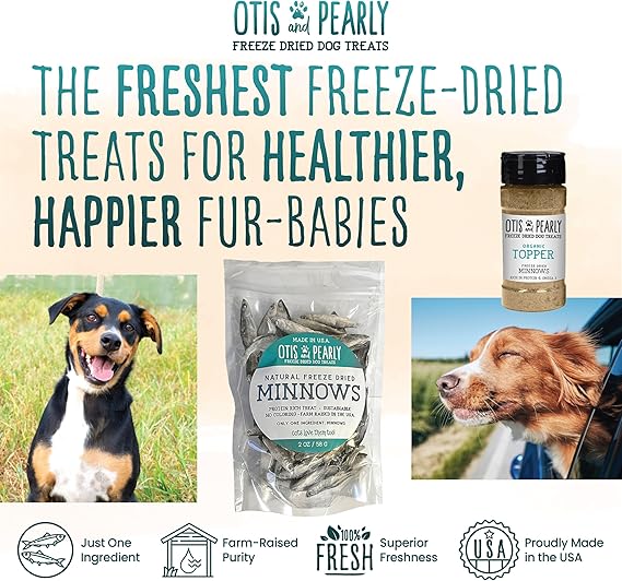 Otis & Pearly Freeze Dried Minnow Dog Treats - Single Ingredient, Made in USA - Healthy Protein Treat for Small, Medium, Large Breeds, 1 oz