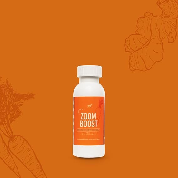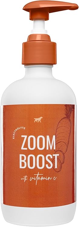 Zoom Boost Electrolyte 7.7 oz Glass Bottle with Pump | Ideal for Active Dogs | Rapid Absorption and Easy Digestion | Carrot and Ginger Flavored