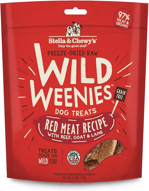 Dogs go absolutely wild for these treats -- as thousands of pet parents have shared in their reviews! Wild Weenies are perfectly sized for training, soft enough to break into smaller pieces, and won't crumble in your treat pouch. Each serving provides 37-40% of your dog's daily recommended protein intake in a convenient, shelf-stable format.