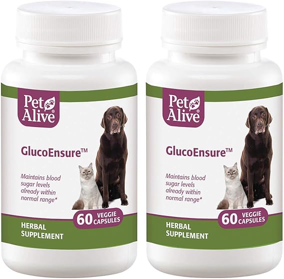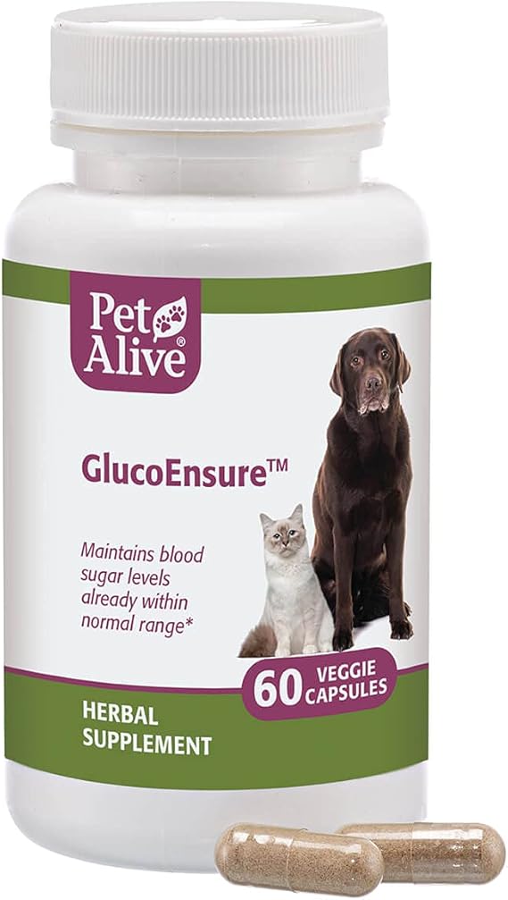 Herbal remedies and dietary supplements can help to support pancreatic health and maintain a healthy supply of insulin - thus helping to naturally keep pet blood sugar levels within the normal range. Along with the correct lifestyle choices, herbal remedies and dietary supplements can make all the difference to your pet’s health. GlucoEnsure contains a specially selected combination of herbs known for their ability to support pancreatic health, and is an excellent allaround tonic supplement. Additionally, GlucoEnsure can help to support normal immune system functioning and feelings of health and vitality. GlucoEnsure can be used alone, or as part of a total veterinarian program. Modern diets with high sugar and fat contents have affected the health of people all over the world - and your furry friends are no exception. A diet that is high in fiber and complex carbohydrates slows the digestive process and helps to stabilize blood sugar levels. In obese animals, losing weight is also advised, and your vet may advise a prescription diet. However, if you find your pet dislikes pet food, you can prepare homecooked food (do this in consultation with a veterinary nutritionist). Avoid commercially prepared pet foods, which may contain high amounts of sugar and preservatives. Exercise is another important part of keeping your pet’s blood sugar levels under control. However, be sure to keep the activity level the same from day to day. Kosher certified.