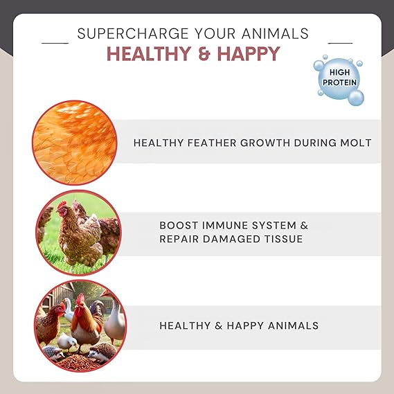 - Promote healthier feather production with our high-protein chicken protein treat. Ideal as chicken feed for laying hens or worms for birds, including mealworms for bluebirds, this premium treat supports vibrant feathers and overall poultry health.