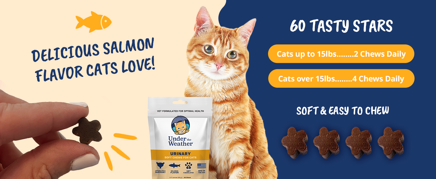 Under The Weather Pet Urinary Tract Support Chews for Cats | Promote Healthy Urinary Function in Cats | 60 Star Shaped Soft Chews