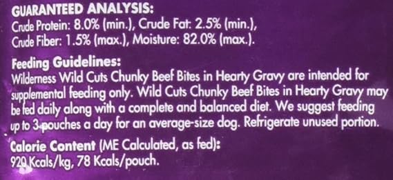 Treat your dog's wild side with BLUE Wilderness Trail Toppers Wild Cuts Natural Wet Dog Food. Made with high-quality salmon as the first ingredient, this grain-free wet dog food provides a delicious taste and the nutrients your dog needs to stay active. Mix these meal toppers into your dog's dry food for added flavor, or serve as a tasty treat between meals. And like all Blue Buffalo natural dog food recipes, BLUE Wilderness wet dog food toppers do not contain any chicken (or poultry) by-product meals. They are also free of corn, wheat, soy, artificial flavors, and preservatives.