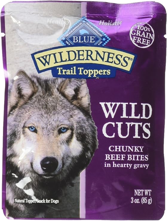 Blue Buffalo Wilderness Trail Toppers Wild Cuts Wet Dog Food Variety Pack, High-Protein & Grain-Free, Made with Natural Ingredients, Chicken and Beef Flavors, 3-oz Pouches, (12 Count, 6 of Each)