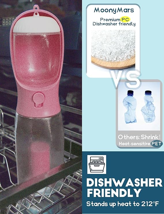 - Dishwasher friendly: crafted from food-grade ABS+PC, BPA-free, our dog water bottle withstands 212 ℉/100 ℃, dishwasher-friendly. Perfect for dog walks, travel & trips, picnics, camping, hikes, or any pet-parenting adventure