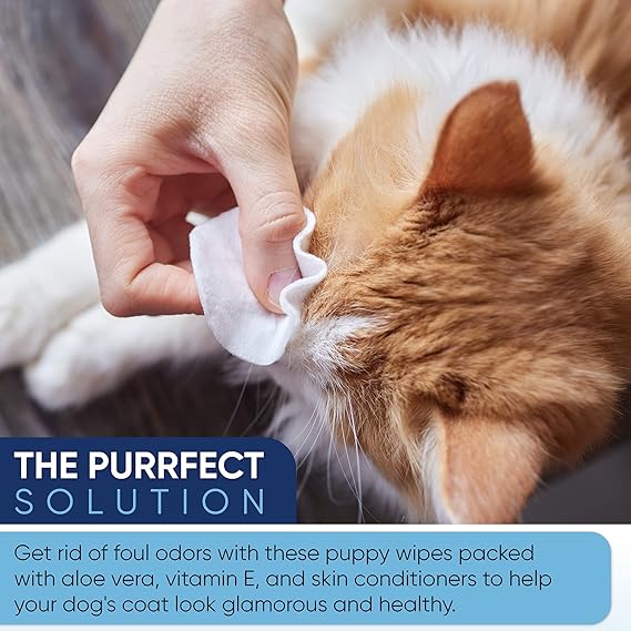 - Vet and Groomer Recommended: This 400-piece pack of thick dog wipes is safe to use on your puppy’s coat, ears, face, paws, and skin. These wipes for pets also work great with cats!
