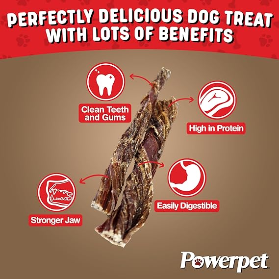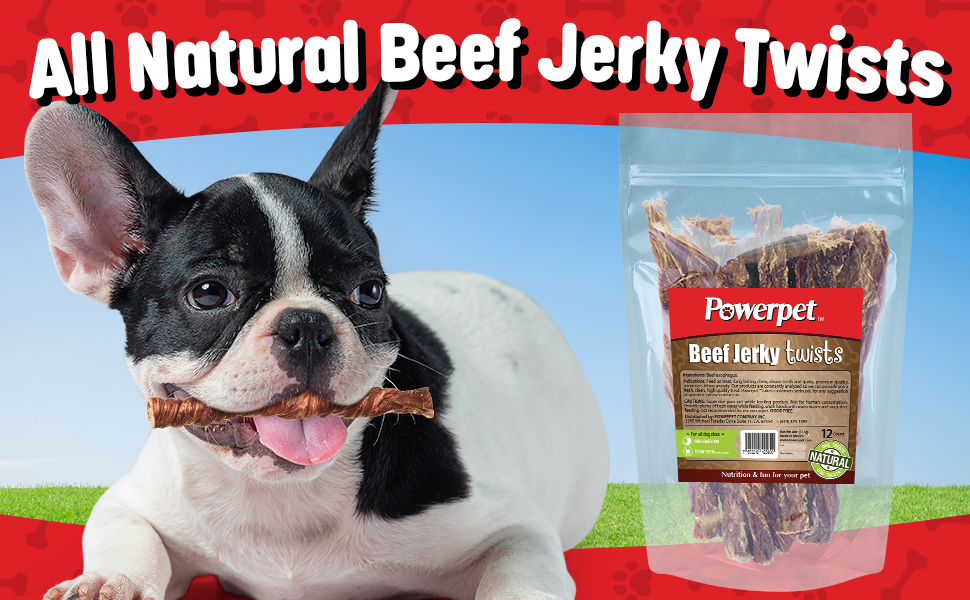 Powerpet Treats Beef Jerky Twists - 100% Natural Dog Chews - High Protein, Low Fat - Made from Premium Beef Esophagus - Promotes Dental Health - Long-Lasting Treats - Great for All Breeds - Pack of 12