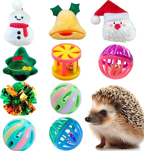 10 pcs Christmas Cute Hedgehog Enrichment Toys Hedgehog Supplies Cage Accessories Small Animal Ball Bell Pet Interactive Stuffed Toys