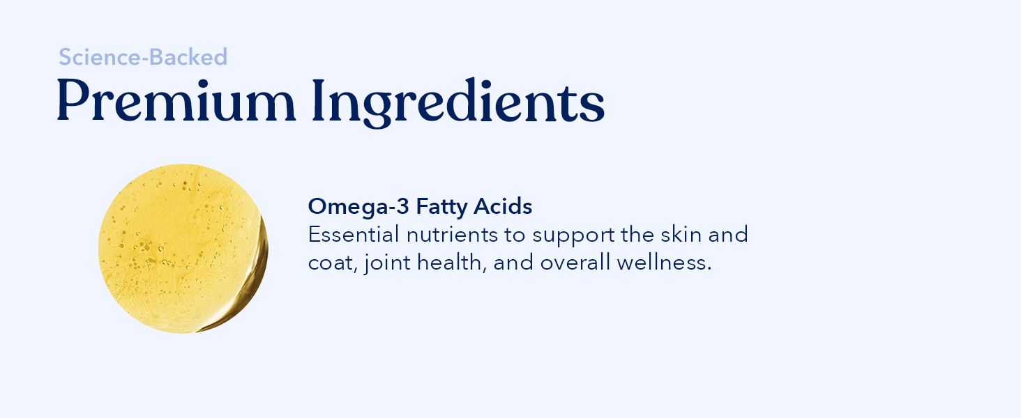 - Joint Health Support - Contains essential Omega-3 Fatty Acids to support resilient joints, skin and coat, joint health, and overall wellness.
