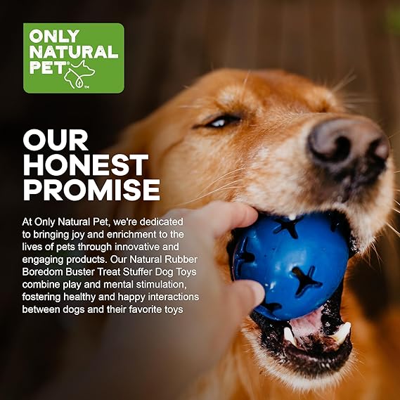 Only Natural Pet Rubber Boredom Buster Treat Stuffer Dog Toys - Interactive Stuffable Feeder Dispenser Fillable Durable Play Puppy Medium Large XS Chew Pup Hide Holder Easy Refill -RubberBall/DarkBlue