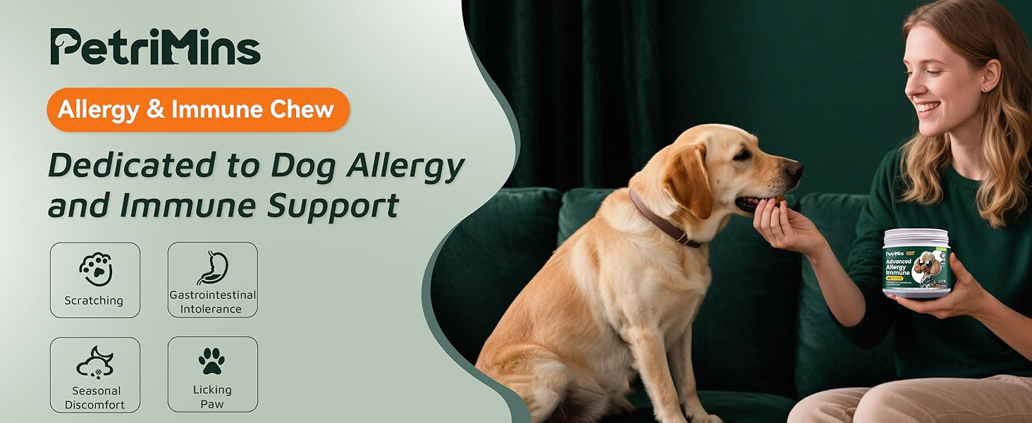 - Effective Allergy Relief for Your Dog or Pet: PetriMins dog allergy chews are formulated to alleviate itching, scratching, and irritation caused by environmental and food allergens, promoting a comfortable and happy life for your pet.