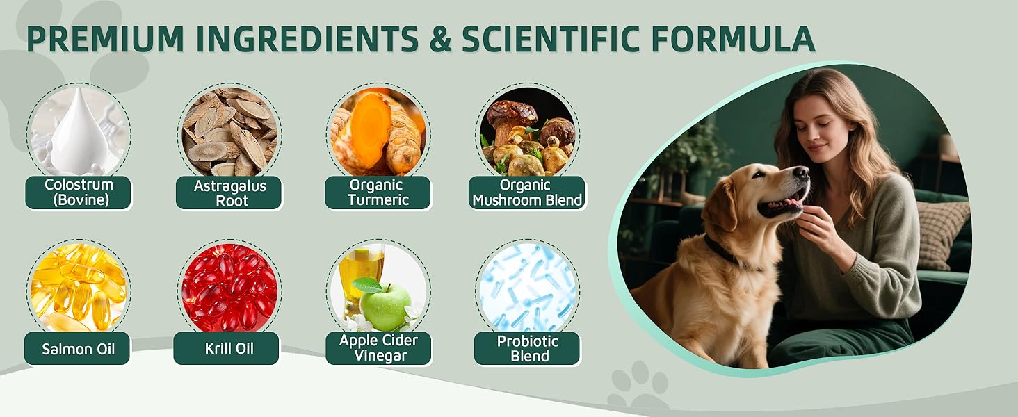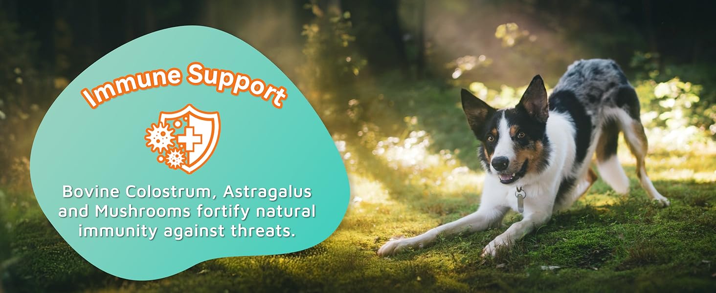 - Strengthen Your Dog’s Immune System Naturally: Enriched with 600mg of Colostrum (Bovine), a natural source of antibodies, these chews help bolster your dog's immune defenses, aiding in faster recovery and overall health maintenance.