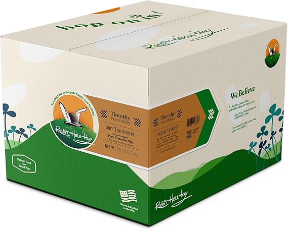 Rabbit Hole Hay's All Natural Pure Timothy Pellets are made from 100% pure Timothy hay, offering essential fiber and nutrients that small pets need to maintain healthy digestion and overall well-being. Our generous 40 lb box is perfect for bulk purchasing, providing a long-lasting supply for households with multiple pets or those who prefer to buy in larger quantities. These nutrient-dense pellets are specifically processed to retain their nutritional value and taste, making them an excellent choice for rabbits, guinea pigs, chinchillas, and other small herbivores. Trust Rabbit Hole Hay to deliver the highest quality nutrition for your beloved pets.