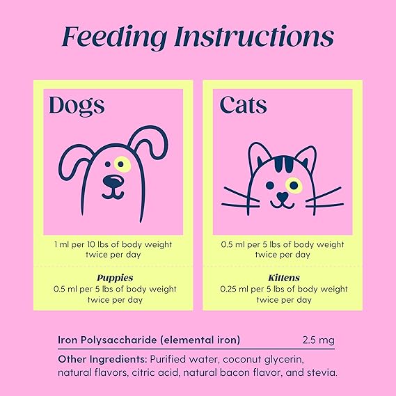 - Effective Support: Taily's Liquid Iron Supplement is specially formulated to aid dogs and cats suffering from blood loss and lethargy caused by iron deficiency. Provide your beloved pets with the essential iron they need to stay active and healthy.
