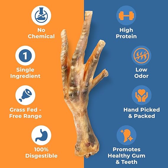 Give your pup a treat they’ll love with K9warehouse chicken feet dog treats, a wholesome and satisfying option made with a single ingredient. Each crunchy chicken foot is carefully prepared to preserve its natural texture and taste, making these chews a favorite for dogs of all sizes and breeds. Our chicken feet for dogs are crafted to provide a safe and enjoyable chewing experience, helping satisfy your dog’s natural instincts. Made from free range chicken, these chews deliver a high-quality, natural option that pet parents can feel confident about. We keep it simple with no additives, fillers, or artificial ingredients — just real dog chicken feet your furry friend will enjoy. For pet owners seeking a clean and simple treat, our organic chicken feet are an excellent choice. These chews are not only flavorful but also minimally processed, keeping them as close to nature as possible. Whether you’re rewarding good behavior or just want to spoil your pup, these crunchy bites make treat time extra special. Our selection of dehydrated chicken dog treats includes carefully dried options, ensuring long-lasting flavor and a satisfying crunch. Packed and prepared with care, these chicken feet chews are perfect for training, rewarding, or simply keeping your dog happily occupied.