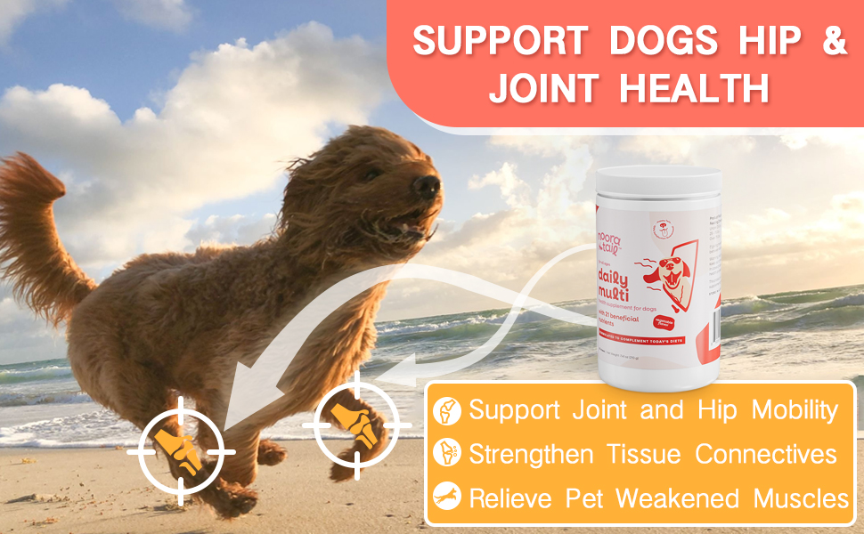 - Hip & Joint Support: our dog vitamins multivitamin provides hip and joint support, helping to reduce inflammation & improve flexibility, enabling your dog to enjoy better mobility and a more active lifestyle.