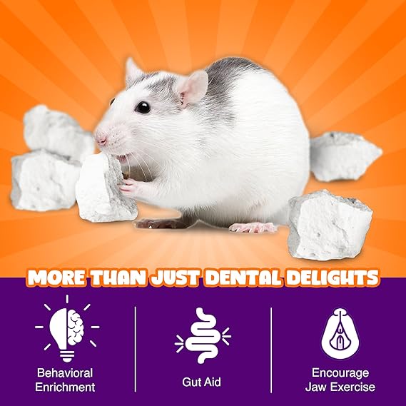 - Rich In Beneficial Calcium --- Unlike wooden or synthetic chew toys, the CoCoo Grinding Stones have the added benefit of being rich in calcium. When your pet gnaws on the volcanic lava cubes, he ingests beneficial calcium. This element is known to aid in growing strong teeth is essential for proper bone development.