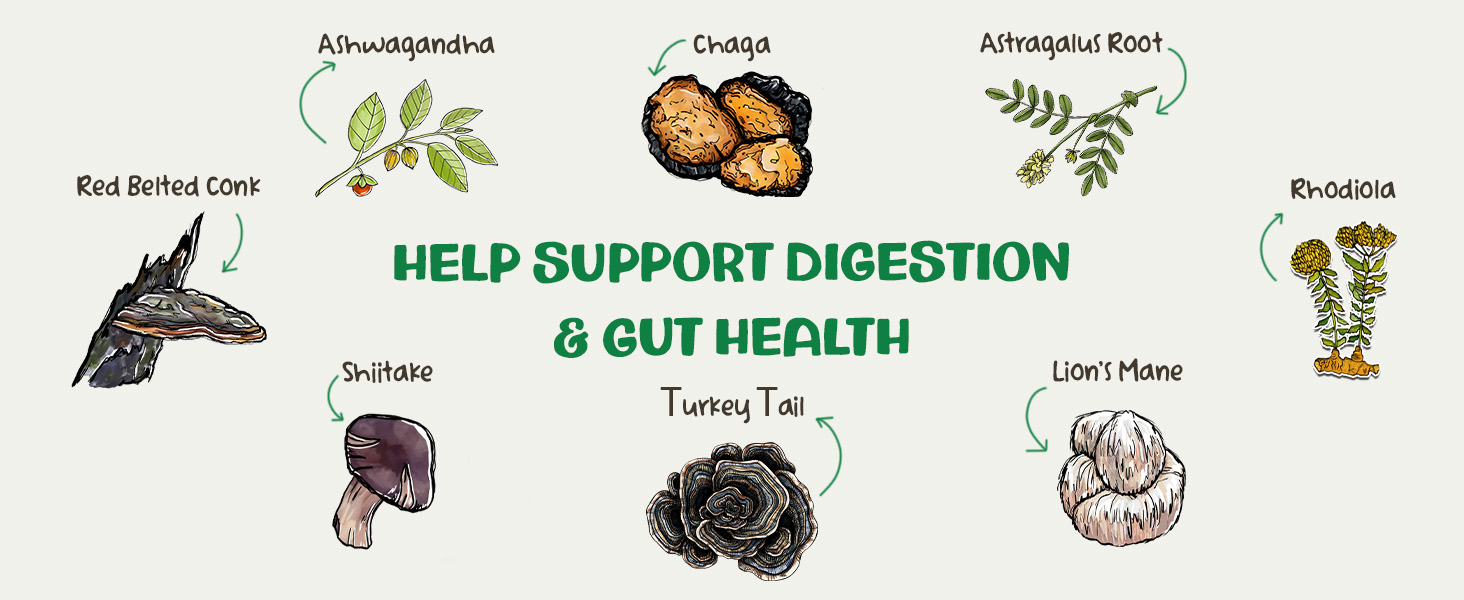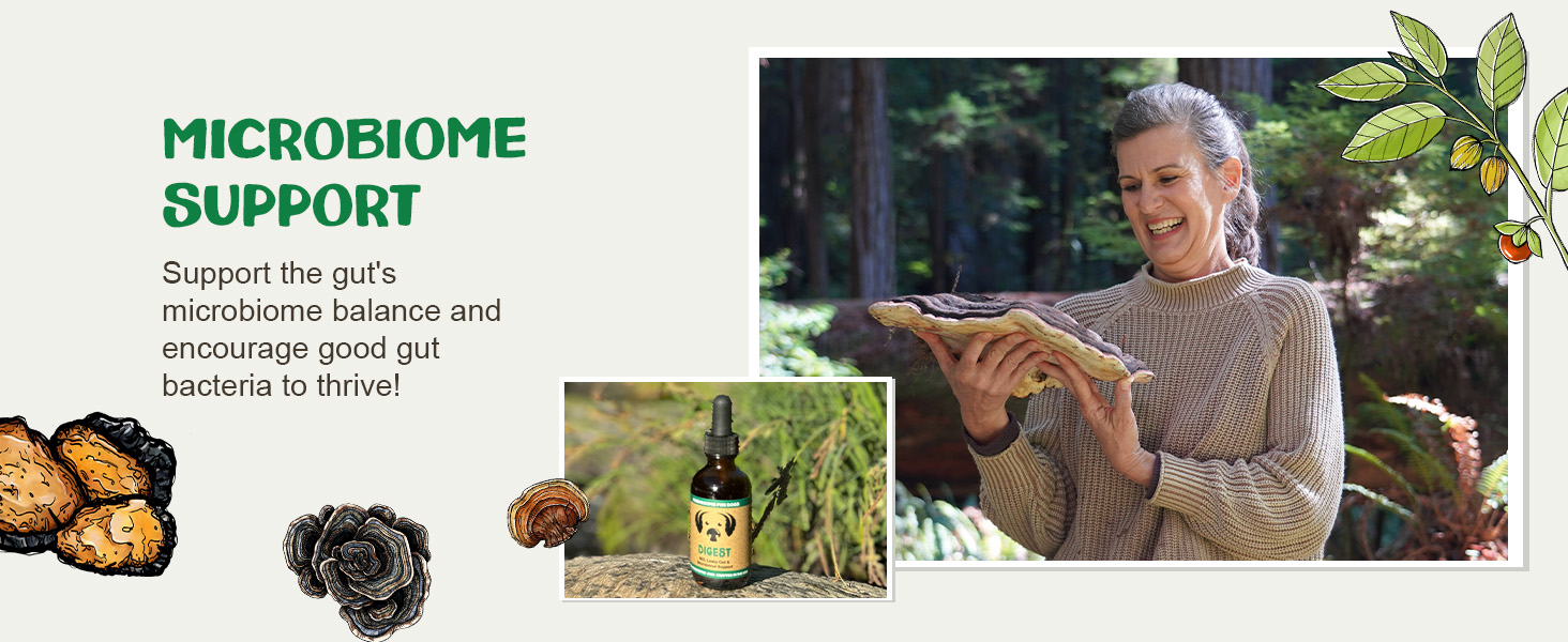 - FOR A BALANCED GUT MICROBIOME: Keep the canine gut troubles away with a nourishing gut health for dogs tincture with Turkey Tail, Shiitake, Chaga, Lion's Mane, & Red-Belted Conk mushroom extracts!