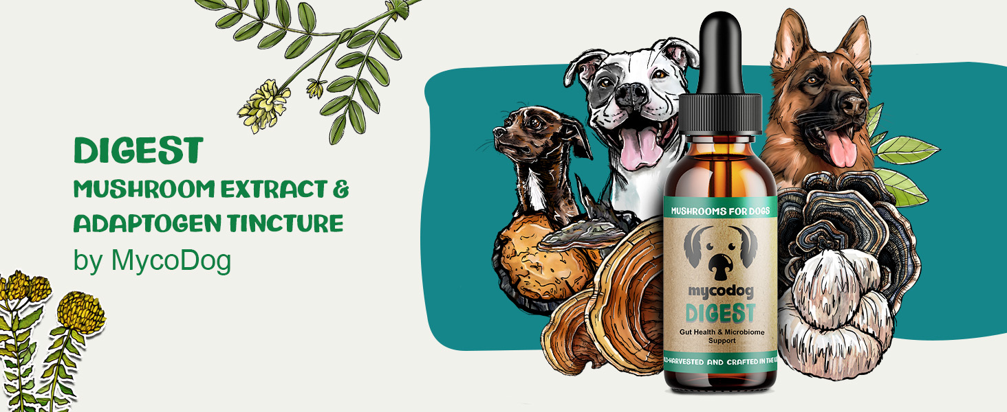 MycoDog Digest - Digestive Support Supplement for Dogs - Gut Health & Microbiome Balance - Probiotic Alternative with Functional Mushrooms and Adaptogens