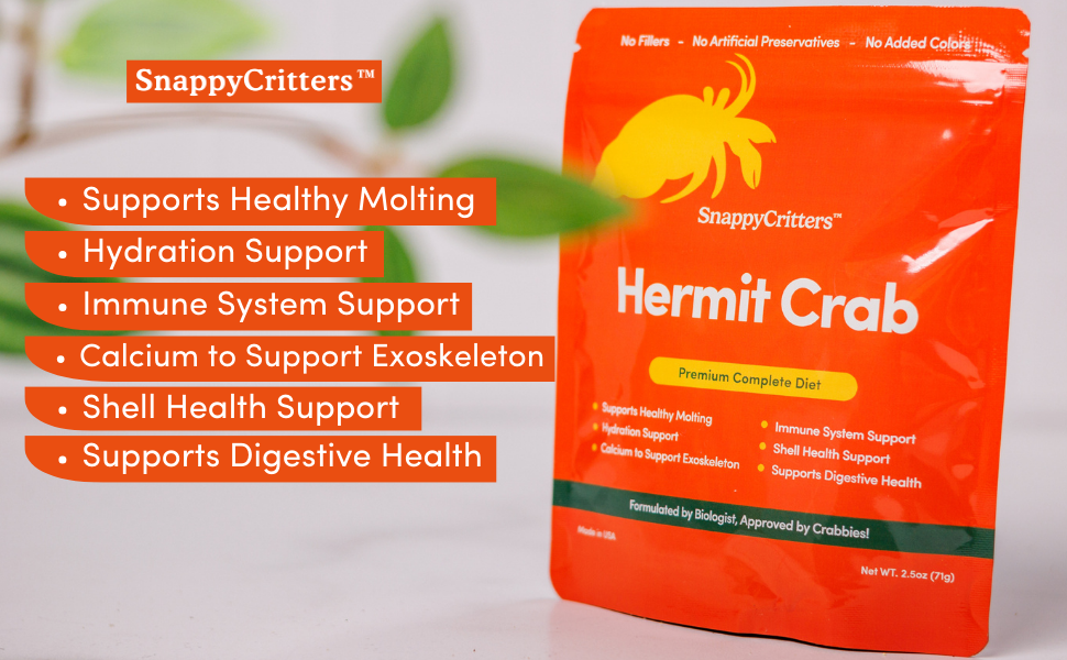 Hermit Crab Food - Premium Complete Diet. Non-GMO Organic. US FDA Facility. Supports Molting, Shell Health, Digestive System and Over-All Immune System - 2.5 oz