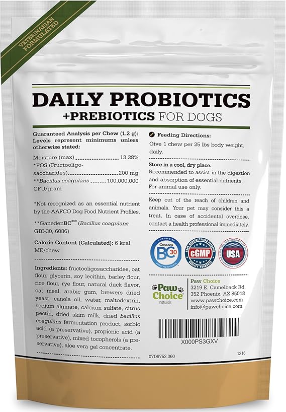 Paw Choice Probiotics for Dogs with Prebiotics - Daily Chews for Gut Health, Digestion, Regularity, and Immune Support - Natural Supplement Treat Made in USA