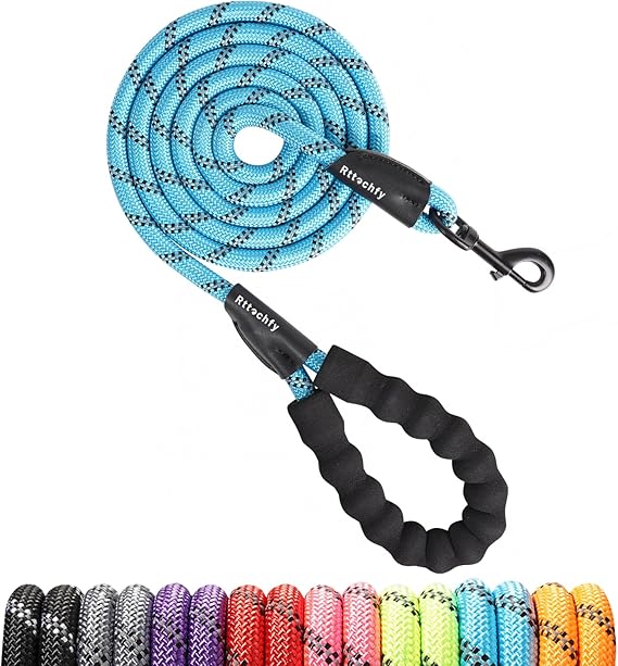 Rttochfy Rope Dog Leash 2/4/5/6/8/10 FT with Comfortable Padded Handle and Highly Reflective Threads for Small Medium and Large Dogs Heavy Duty (1/2"-6 FT, Blue)