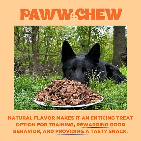 PAWW CHEW Beef Lung Dog Treats, 100% Natural, Single Ingredient, (1 Pound) Made in The USA, Dried & Dehydrated, High Protein, High Value Dog Training Treats, Grain Free, Low-Odor Free for All Breeds