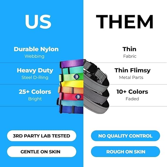 - 【 MATERIAL 】Collar - high-density nylon webbing; Buckles - eco-friendly plastic; D Ring - chromed steel; Leash - nylon webbing; Snap hook - chromed zinc alloy; Harness - high-density nylon webbing; Buckle - eco-friendly plastic; D Ring - chromed coated metal