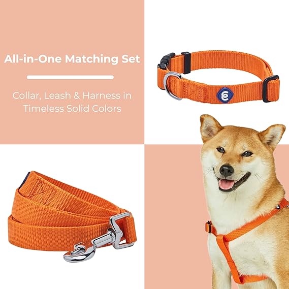 Blueberry Pet Essentials Dog Harness and Leash Set - Large Orange Vermilion Dog Collar and Leash Set for Eco-Conscious Owners, Adjustable, Durable, 4 ft Leash, Ideal for Active Pet Parents