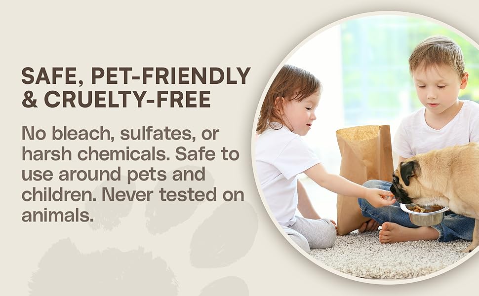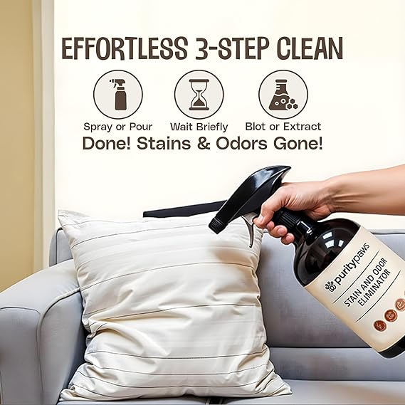 - EASY CLEANING SOLUTION: This pet-safe stain spray simplifies cleanup from messes caused by dogs, cats, or small animals. Ideal for busy homes, it removes stains and odors with minimal effort. Just spray, let it sit, and wipe clean for a fresh, mess-free surface every time.