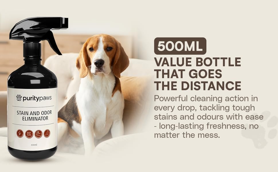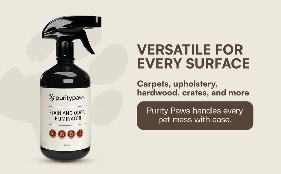 - CERTIFIED SAFE SURFACES: Certified safe for use on hardwood, tile, carpet, furniture, and fabric. This 500ml pet mess cleaner offers long-lasting performance and reliable odor control. Ideal for everyday use in multi-pet homes. Trusted for safe, effective results on pet-friendly surfaces.