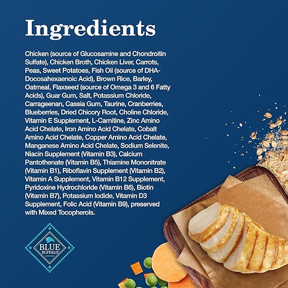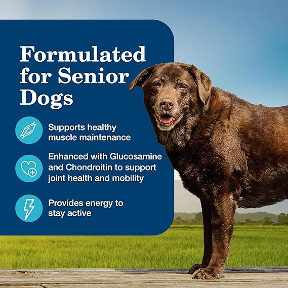 BLUE Homestyle Recipe Natural Senior Wet Dog Food is formulated to meet the nutritional needs of older dogs. Blue Buffalo wet dog food made with real, high-quality chicken or beef as the first ingredient to help support healthy muscle maintenance. Blue Buffalo canned dog food also contains Glucosamine and Chondroitin to support joint health. Like all Blue Buffalo dog food, blue buffalo senior dog food is formulated without any chicken (or poultry) by-product meals. This soft dog food is also free of corn, wheat, soy, artificial flavors, and preservatives. Serve on its own as a complete and balanced meal, or mix it into dry food for even more taste appeal.