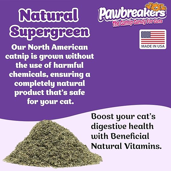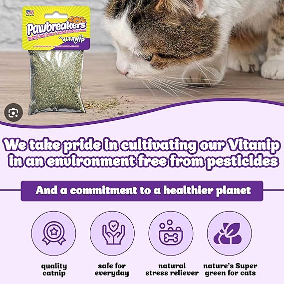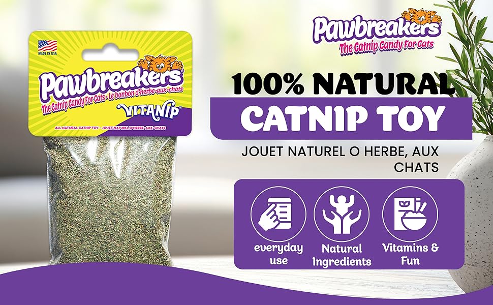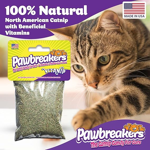 - Made in USA With Premium Catnip Treats & Cat Toys - Pawbreakers Vitanip has human grade catnip for cats with essential vitamins. This catnip cat treat is safe for everyday use, offering fun and nutrition in one! Perfect for catnip toys for cats, enhancing playtime and health.