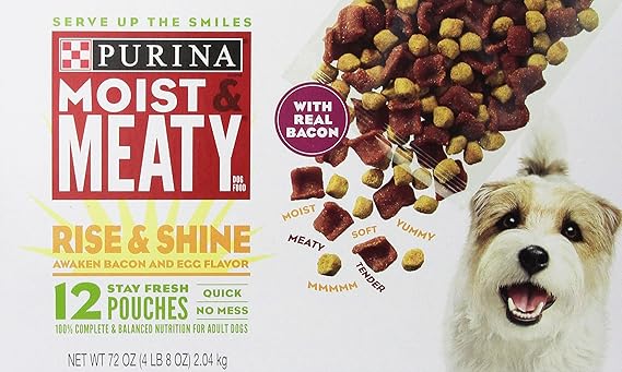 Serve up the smiles for your dog with Purina Moist and Meaty Steak Flavor adult dog food. The convenient individual Purina Moist and Meaty dog food pouches make it easy to fill their bowl with a 100 percent complete and balanced meal for adult dogs, offering the real meat dog food taste and soft texture dogs crave. Stay-fresh pouches keep every bite tender and full of mouthwatering beef dog food flavor. We make this semi moist dog food with real beef, with each serving supplying the high-quality protein he needs for strong muscles. Use these soft dry dog food pouches as single-serve meals, snacks, or dog meal toppers sprinkled over his wet or dry food to make his meals twice as exciting. Don’t keep your dog waiting; serve Purina Moist and Meaty Steak Flavor pouches. There’s no cleanup for you, and the delectable meaty bites made with real beef in our soft and moist dog food pouches might just convince him he’s ordering off the people menu.