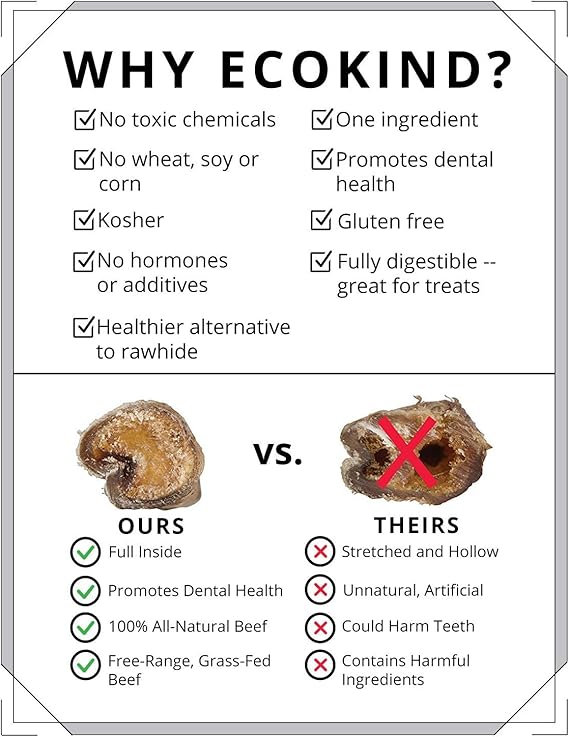 Are You Looking For A Healthy, Nutritious & Delicious Chew Stick For Your Dog? Now you don’t have to settle for plastic chew toys or low-quality chews anymore, since the healthiest and yummiest bully sticks for dogs are finally here! Presenting The Ecokind Pet Treats Premium USA-Made Bully Sticks For Dogs! Spoil your four-legged friend with our hand-picked braided bully sticks today and make sure that your pup has a safe, healthy and flavorful treat! Offer your doggo endless hours of chewing fun with our long-lasting and high-quality beef bully stick! Why Choose Our Bully Sticks For Dogs? Because Your Pooch Deserves A Gourmet Snack - just like you enjoy BBQ burgers or smoked ribs, your doggy will go nuts over our meaty, chewy and delicious sticks for dogs! Rest assured that our dog chew sticks will make your pup’s tail wag! Because You Want To Keep Your Doggy Safe - our smart sticks are sourced from free-range, grass-fed cattle and are hand-picked right here in the USA. As a result, our odor free bully sticks contain NO artificial additive, NO hormones and NO harmful chemicals! Because Your Dog’s Dental Hygiene Is A Priority - our fully digestible bull sticks for puppies will help prevent tartar buildup and plaque, cleanse your dog’s teeth, give your doggy’s jaws a healthy workout and support overall dental and oral hygiene! And The Best Part? All breeds love our beefy sticks, from Golden Retrievers to Poodles and from Boxers to Yorkshire Terriers! Your doggo will love them too! Why Wait Any Longer? Click “Add To Cart” NOW & Prepare Yourself For Happy Wagging Tails! Use this and all dog chews only under close supervision.