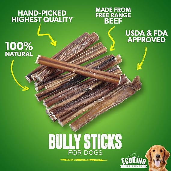 EcoKind Pet Treats All-Natural Premium 4 Inch Bully Sticks for Dogs | 16 Oz. Bag | Delicious Protein Rich Dog Chews