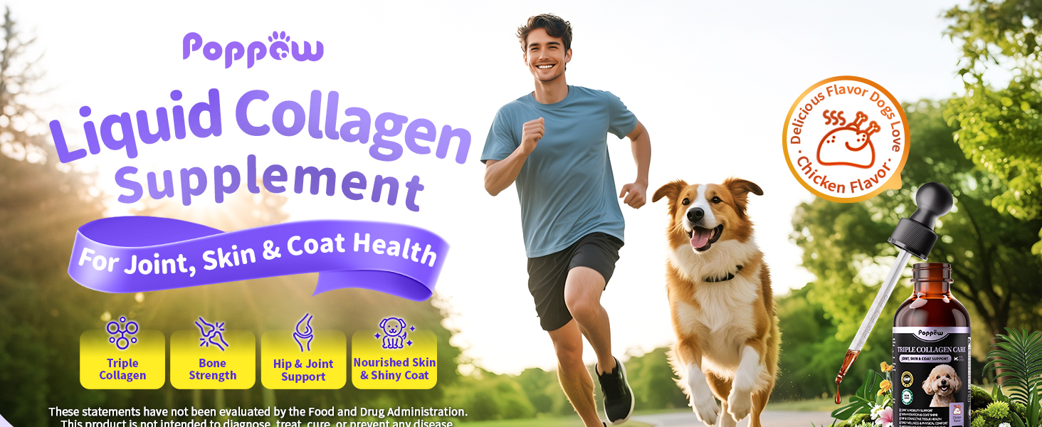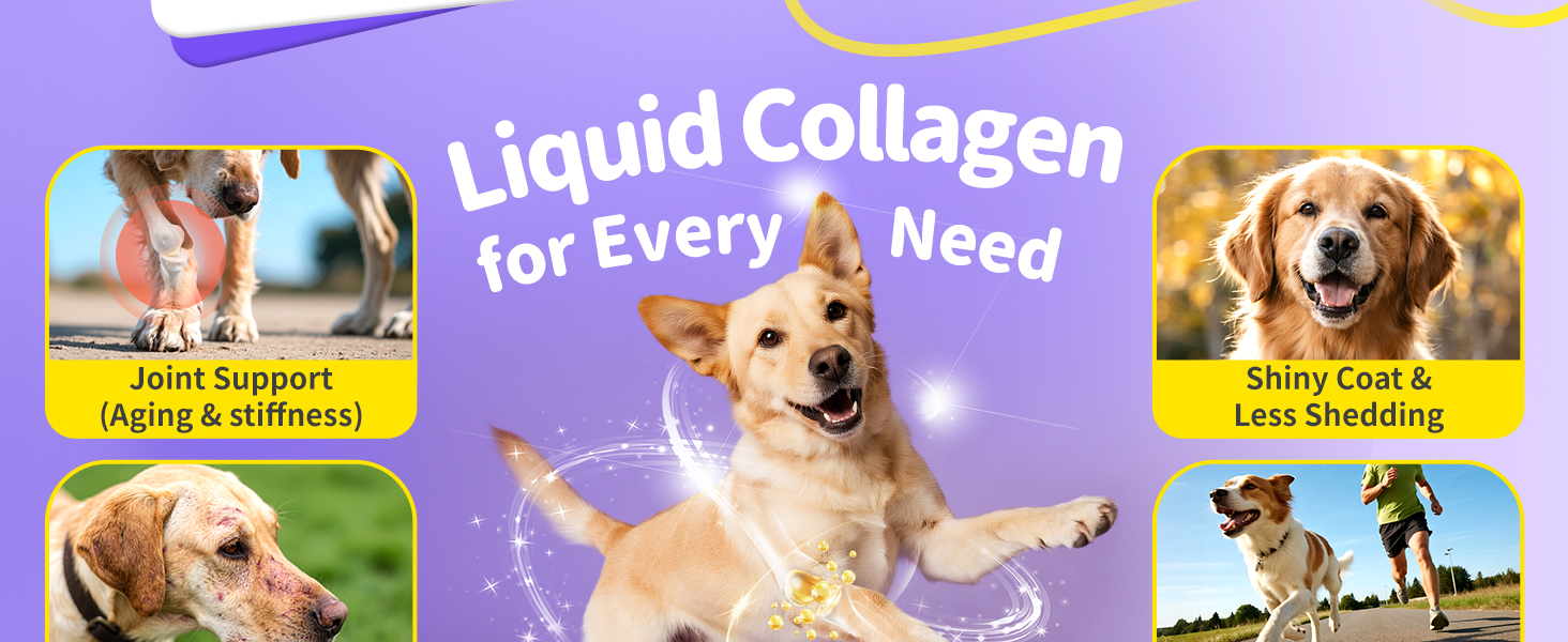 - TRIPLE LIQUID COLLAGEN FOR DOGS:This premium Collagen for Dogs formula features a powerful triple-blend of Marine, Chicken Cartilage, and Bovine collagen peptides. Delivering 250mg of targeted support per serving, it provides a comprehensive solution for your dog's robust joint, skin and coat health.