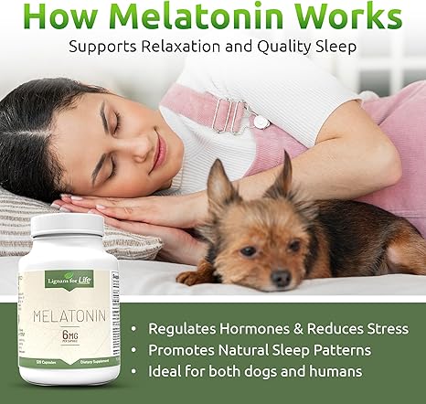 - AMPLE MELATONIN SUPPLY: Each bottle of our supplement comes with 120 capsules, each containing 6mg of melatonin. This abundant supply is perfect for maintaining consistent support for your and your dog's overall health and well-being, ensuring a steady provision for daily use.