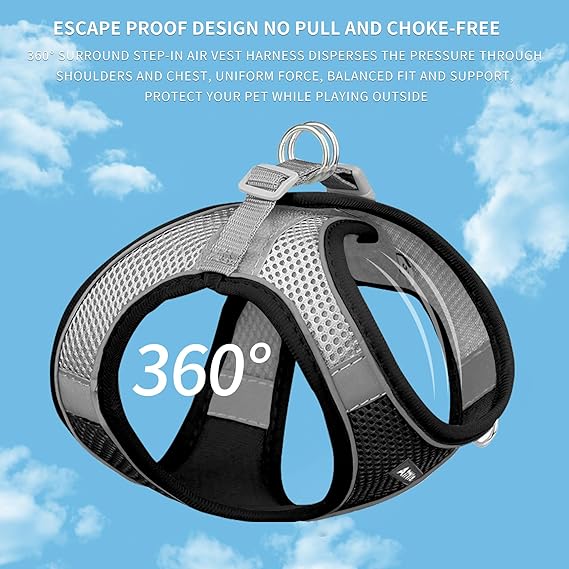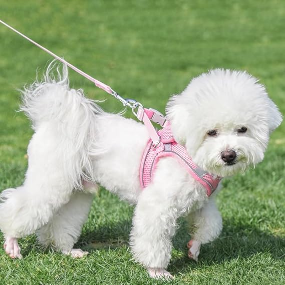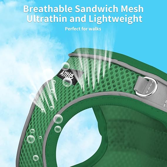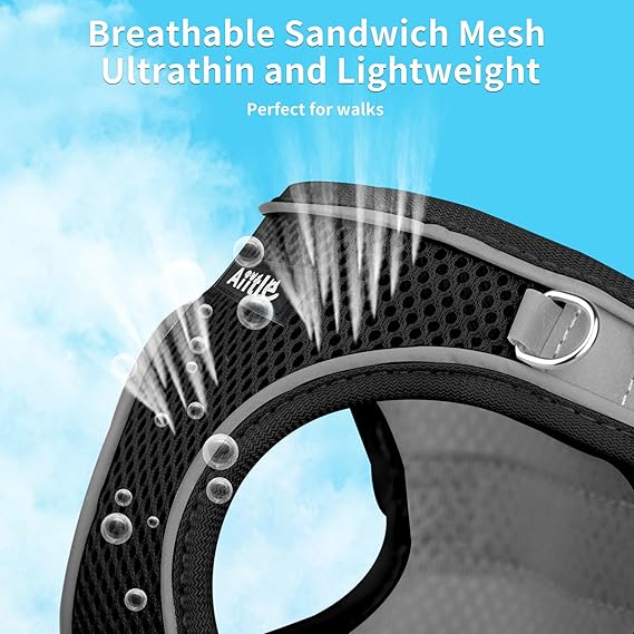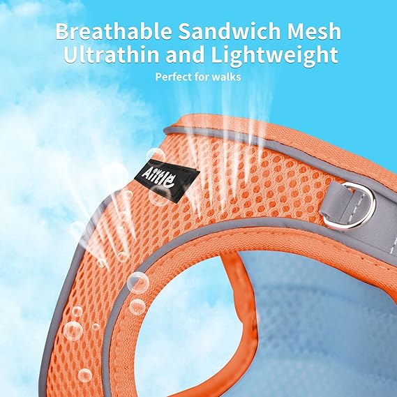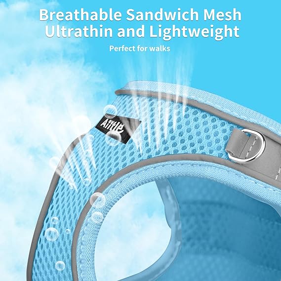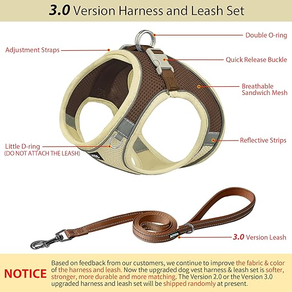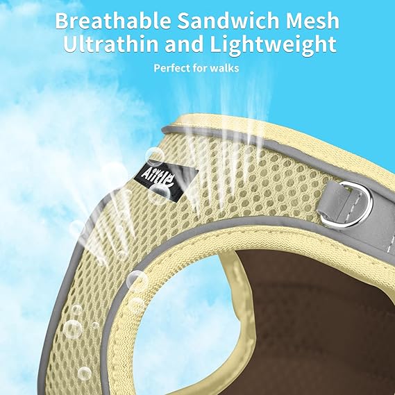 AIITLE Comfortable Dog Harness and Leash Set for Walking - Summer Step in Vest Harness,Reflective Bands, Adjustable No Pull Puppy Essentials, for Small Dogs and House Cats Beige XS