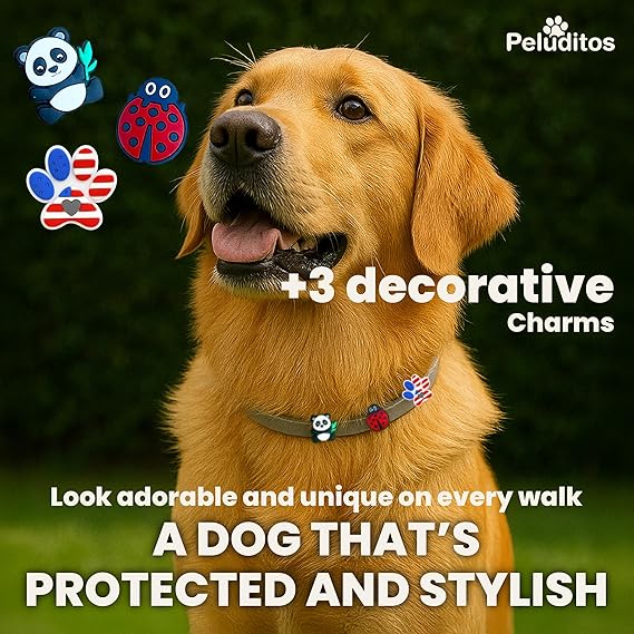 Natural Dog Collar with Essential Oils - 8 Months of Comfort - Adjustable, Lightweight & Stylish - Includes 3 Decorative Charms