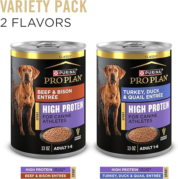Purina Pro Plan Sport High Protein Wet Dog Food, Beef and Bison Entrée and Turkey, Duck and Quail Entrée Variety Pack - (Pack of 12) 13 oz. Cans
