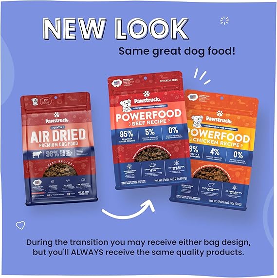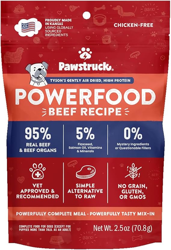 Pawstruck Air Dried Dog Food with Real Beef, Grain-Free, Made in USA, Non-GMO & Vet Recommended, High Protein Limited Ingredient Full-Feed for All Breeds & Ages, 2lb Bag