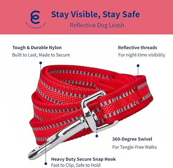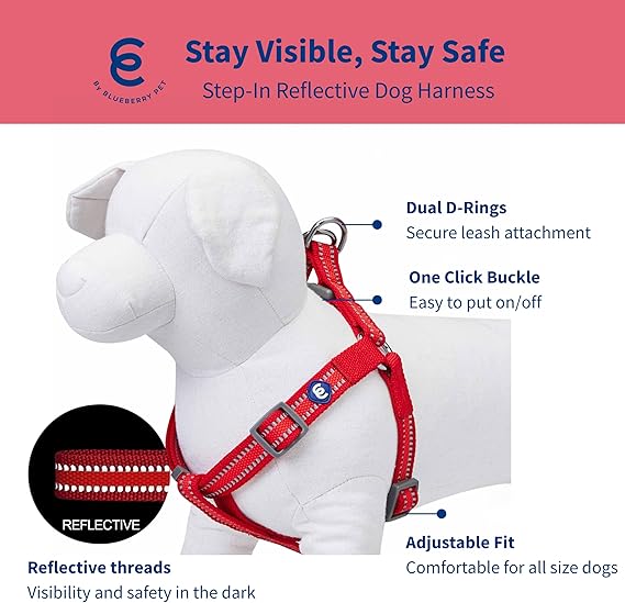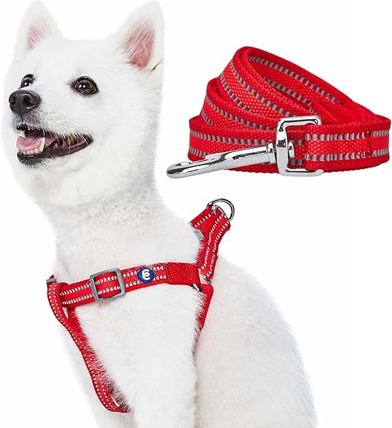 Blueberry Pet Essentials Reflective Back to Basics Matching Dog Harness and Leash Set, Rouge Red, Adjustable Harness with 4 ft Leash for Large Dogs