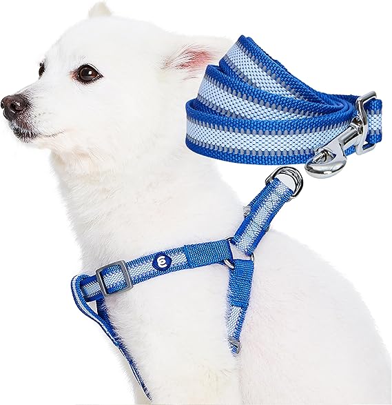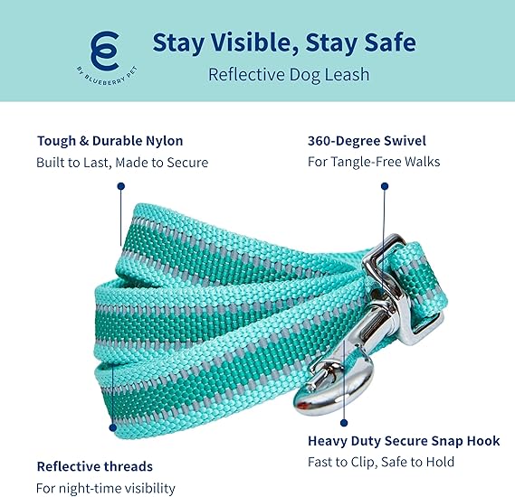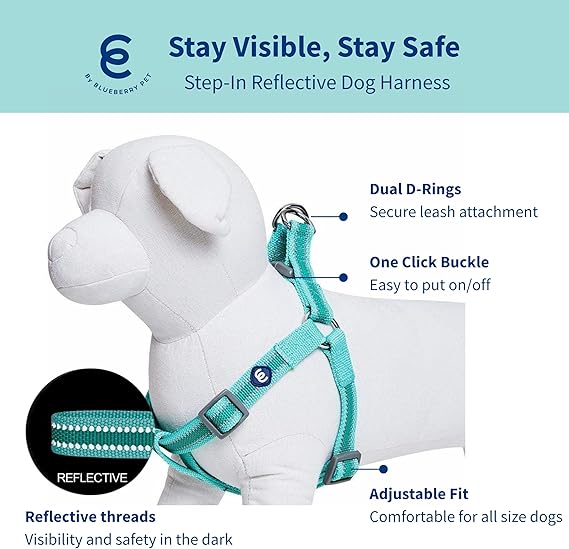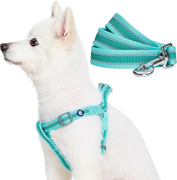 Blueberry Pet Essentials Reflective Back to Basics Matching Dog Harness and Leash Set, Minty Green, Adjustable Harness with 5 ft Leash for Medium Dogs